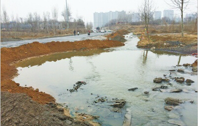 市民王先生反映,南水北調(diào)大橋南邊的祈福大道上,到處都是積水?,F(xiàn)在水深一米多,長(zhǎng)度有近百米,連公交車(chē)都不能通過(guò)。“昨天下雨,積水更深,啥車(chē)都過(guò)不去。我們?cè)谶@里幫助推滅火的車(chē),不知推了多少輛?!?/font>
