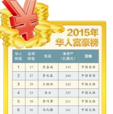昨日《福布斯》雜志中文版發(fā)布2015華人富豪榜。李嘉誠以凈資產規(guī)模333億美元再次蟬聯(lián)第一;李兆基第二;王健林第三,凈資產達242億美元,雄霸內地首富。河南共有4位企業(yè)家上榜,天瑞集團董事長李留法以凈資產規(guī)模21億美元領跑。