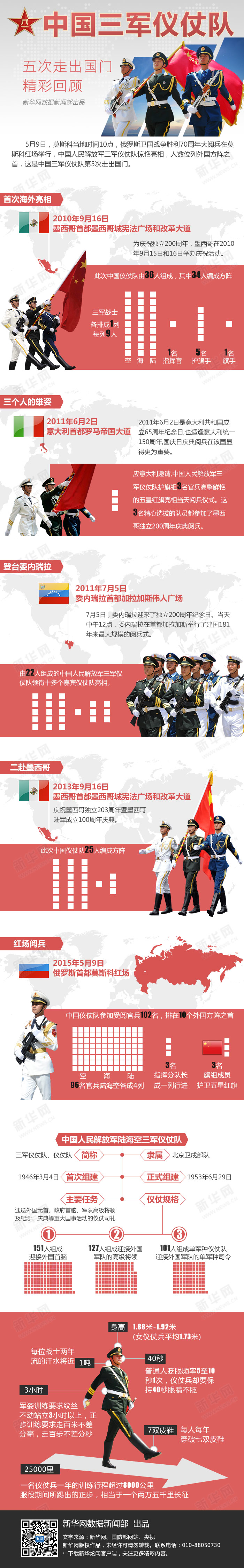 5月9日,莫斯科當(dāng)?shù)貢r間10點(diǎn),俄羅斯衛(wèi)國戰(zhàn)爭勝利70周年大閱兵在莫斯科紅場舉行,中國人民解放軍三軍儀仗隊(duì)驚艷亮相,這是中國三軍儀仗隊(duì)第5次走出國門。