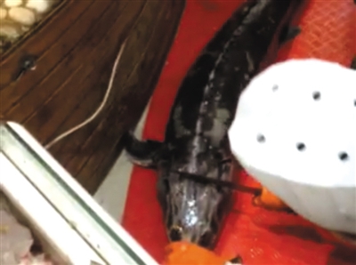 “現(xiàn)在外面鬧得沸沸揚(yáng)揚(yáng)的‘萬元魚’就是這種。這種魚養(yǎng)一個(gè)月都不會(huì)死,養(yǎng)得越久個(gè)頭越大,就越像鰉魚?!弊鲷~生意已有20多年的大勇海鮮老板吳大勇指著池內(nèi)待售的鱘鰉魚說。
