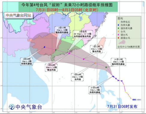 因為“妮妲”的到來,中央氣象臺也于7月31日18時發(fā)布臺風橙色預警,在此之前,來自中國氣象局應急辦消息,中國氣象局7月31日10時啟動重大氣象災害(臺風)三級應急響應。