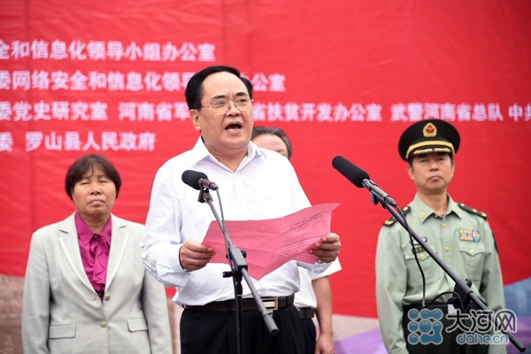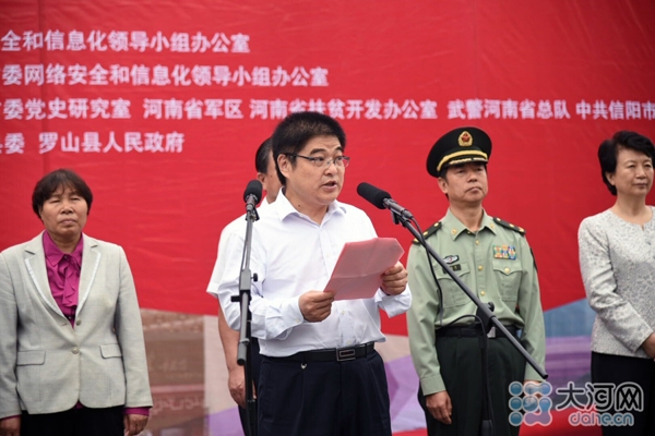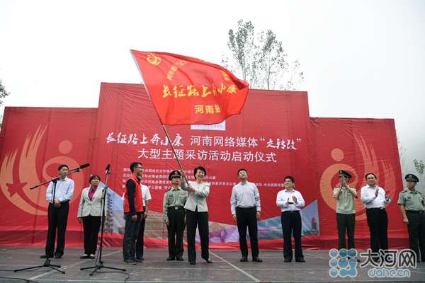 大河網訊(河南日報記者 胡巨成 大河網記者 宋向樂 范昭 通訊員劉宏冰)9月26日,按照中央網信辦統(tǒng)一部署,“長征路上奔小康”河南網絡媒體“走轉改”主題采訪活動在紅25軍長征出發(fā)地——羅山縣何家沖啟動。省委常委、宣傳部長趙素萍出席啟動儀式為采訪團授旗,并勉勵大家多走多看,發(fā)揚長征精神,講好長征故事,將精彩報道奉獻給廣大網友。中央網信辦網絡新聞信息傳播局副局長劉沖出席啟動儀式并講話,省委宣傳部副部長、省委網信辦主任何彧致辭,省軍區(qū)副政委兼政治部主任冷志義等出席啟動儀式。
