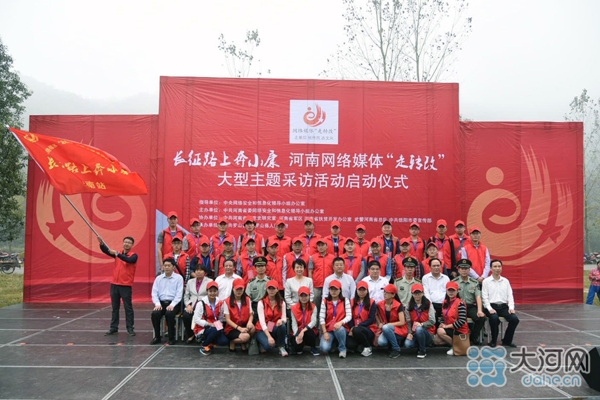 出席“長征路上奔小康”河南網絡媒體“走轉改”大型主題采訪活動啟動儀式的領導和嘉賓與采訪團合影留念
