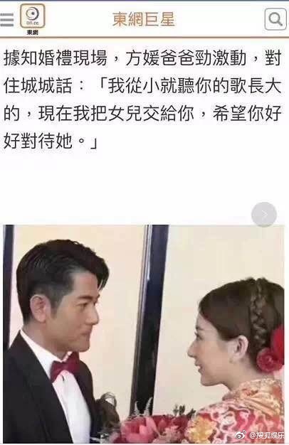 【方媛爸爸叮囑#郭富城#:我從小聽(tīng)你歌長(zhǎng)大】據(jù)港媒報(bào)道,#郭富城方媛婚宴#現(xiàn)場(chǎng),方媛爸爸很激動(dòng)地對(duì)郭富城說(shuō):“我從小就聽(tīng)你的歌長(zhǎng)大的,現(xiàn)在我把女兒交給你,希望你好好對(duì)待她?!?/p>
