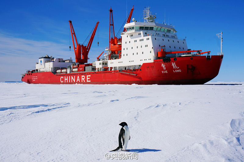 初夏的南極依舊冰山林立,陸緣冰厚度可達(dá)1米多,我國(guó)第31次南極科考隊(duì)正在南極冰蓋區(qū)域進(jìn)行卸貨工作。而南極大陸的主人企鵝對(duì)這些來客非常好奇,常圍觀隊(duì)員們作業(yè),膽大的甚至?xí)潋v著翅膀跑來打招呼。可惜語言不通,沒準(zhǔn)兒是在要QQ號(hào)呢。