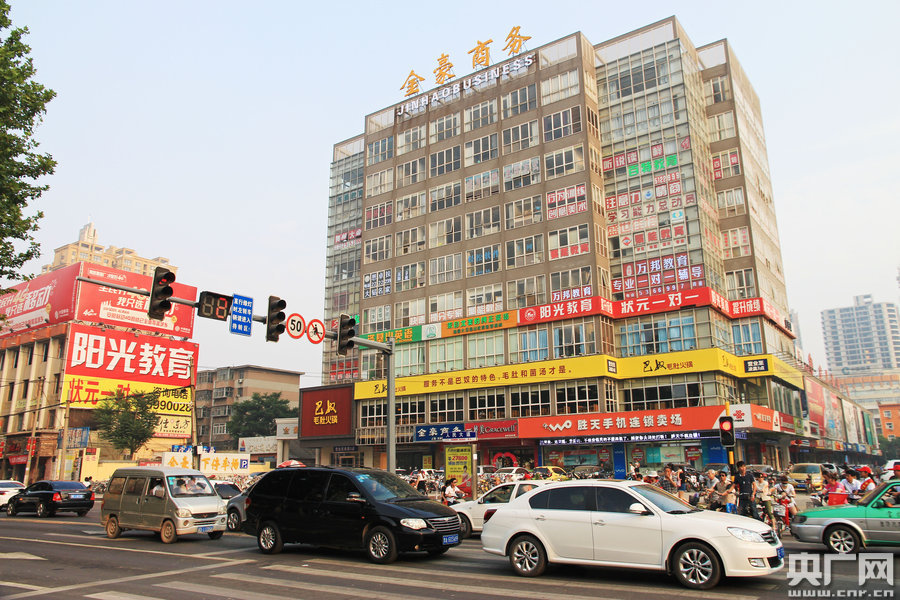 2015年5月26日,河南省安陽市,人民大道與紅旗路交叉口的一棟商業(yè)樓的窗戶上掛滿了輔導班的廣告,從小學、中學的學習輔導到海外留學的培訓,甚至還有幾家“培養(yǎng)情商”、“開發(fā)腦力”的新型輔導班廣告。這棟商業(yè)樓儼然變成了一棟輔導班大樓,市民戲稱輔導班也有了“一條龍”式的服務(wù)。