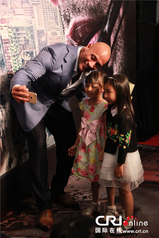 強(qiáng)森與獻(xiàn)花小粉絲賣萌自拍 見面會(huì)主創(chuàng)提醒“一定記得喘氣”