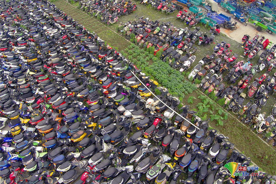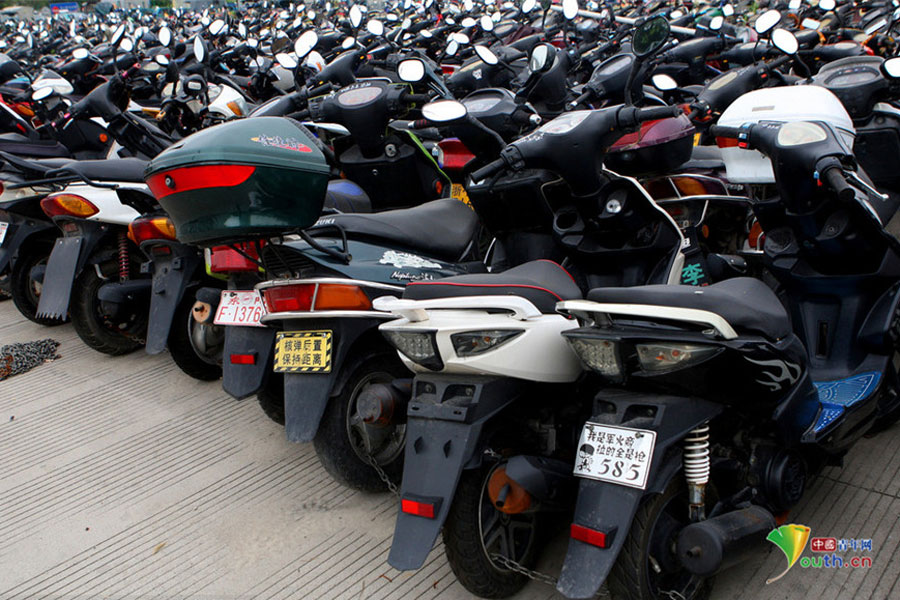 2015年6月4日,超寬、超速、非法營(yíng)運(yùn)三輪電摩及各種摩托車密密麻麻重重疊疊地堆積在一起,從高空中俯瞰場(chǎng)面震撼。這不只是杭州一家報(bào)廢車停車場(chǎng)的情景,幾乎每家停車場(chǎng)都如此。工作人員說,這都是交警執(zhí)法過程中收繳的。工作人員跟記者抱怨說,電摩停放時(shí)間太長(zhǎng),再不拆解都停不下了!據(jù)負(fù)責(zé)人介紹,杭州自禁摩托車以來(lái),總有一些違規(guī)者偷偷地利用摩托車充當(dāng)黑摩的。此舉既不安全,也暗藏各種不安全因素。2014年,杭州有204人死于涉及電瓶車的交通事故;在所有交通事故中,涉及電瓶車的占到四成以上。3月25日,有杭州媒體報(bào)道,杭州收繳的電動(dòng)車已堆滿停車場(chǎng),據(jù)估算馬路上還有百萬(wàn)輛以上超標(biāo)車。(金童子/攝)
