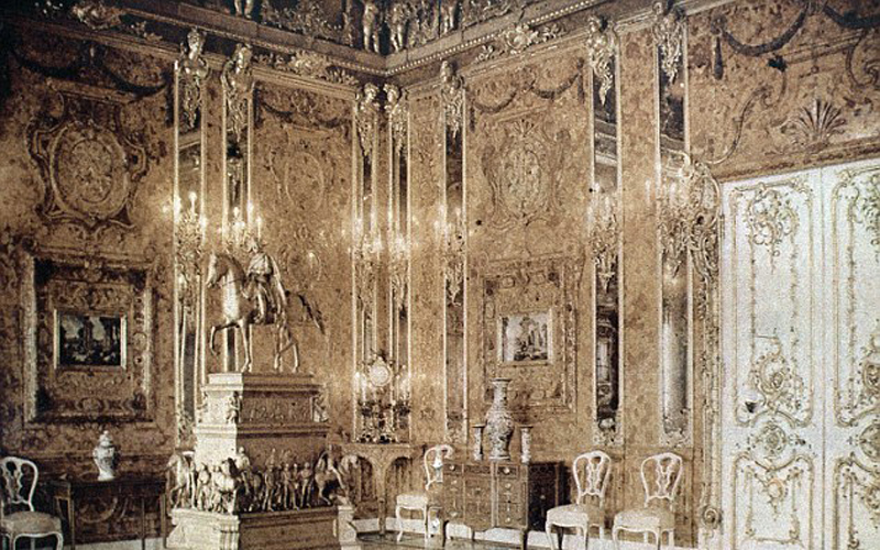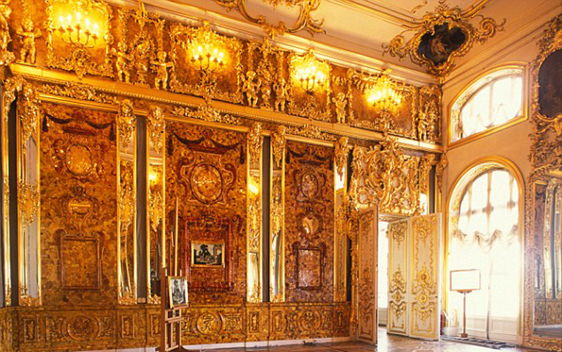 據(jù)悉,所謂的琥珀屋最初據(jù)說只是一個琥珀櫥柜,但最終被擴大為琥珀屋,共用掉450公斤琥珀,直到1770年才完工。納粹于1941年10月份攻陷位于圣彼得堡附近的凱瑟琳宮,并將琥珀屋拆除帶走,最終通過鐵路將琥珀屋運回當時東普魯士的科尼斯堡城堡(Koenigsberg Castle)安放。可是在1945年1月份,這里遭到空襲和激烈的地面攻擊,琥珀屋從此下落不明。