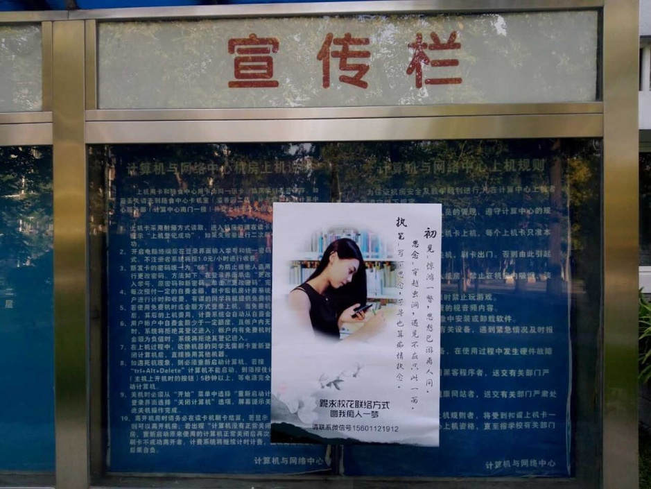 正值開(kāi)學(xué)季,中國(guó)傳媒大學(xué)驚現(xiàn)癡情男,張貼了數(shù)百?gòu)埡?bào)只為表白?;?,據(jù)照片顯示,海報(bào)中有女孩側(cè)臉照片,還留下男生的聯(lián)絡(luò)方式,甚是精細(xì)。