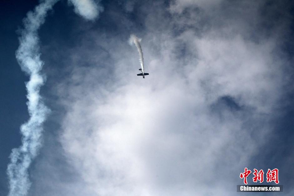 9月24日,河南鄭州上街機(jī)場(chǎng),參加2015鄭州航展的特技飛行員們,穿云破霧在加緊練習(xí)表演動(dòng)作,沖刺9月25日開(kāi)幕的鄭州航展。中新社記者 王中舉 攝