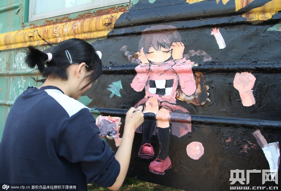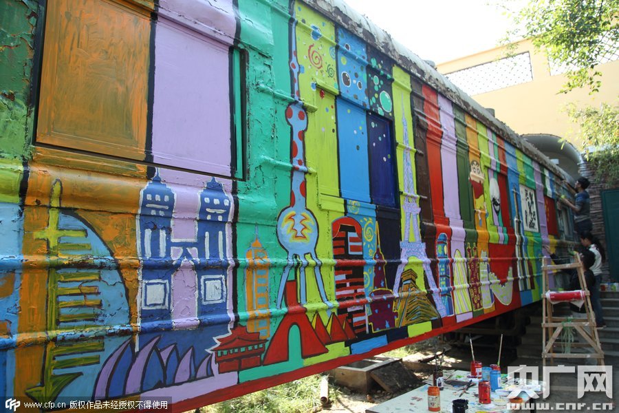 2015年10月10日,鄭州四禾美術(shù)中學(xué)充分發(fā)揮美術(shù)生的優(yōu)勢(shì),對(duì)火車車身1進(jìn)行涂鴉改造,使火車宿舍看起來更加漂亮。
