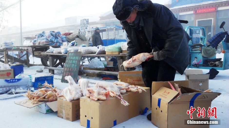 呼倫貝爾市圖里河鎮(zhèn)菜市場(chǎng),當(dāng)日?qǐng)D里河鎮(zhèn)最低氣溫達(dá)-42℃。 圖片來(lái)源:視覺中國(guó)