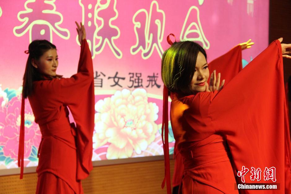 22日,適逢元宵佳節(jié),一場由民警和戒毒學員共同演繹的聯(lián)歡會在陜西省女強制隔離戒毒所舉行,通過歌舞、相聲、二人轉(zhuǎn)、小品等表演形式,鼓勵戒毒人員在新的一年,繼續(xù)增強戒毒意愿和決心,早日戒除毒癮回歸社會。圖為民警表演歌伴舞。 張一辰 攝