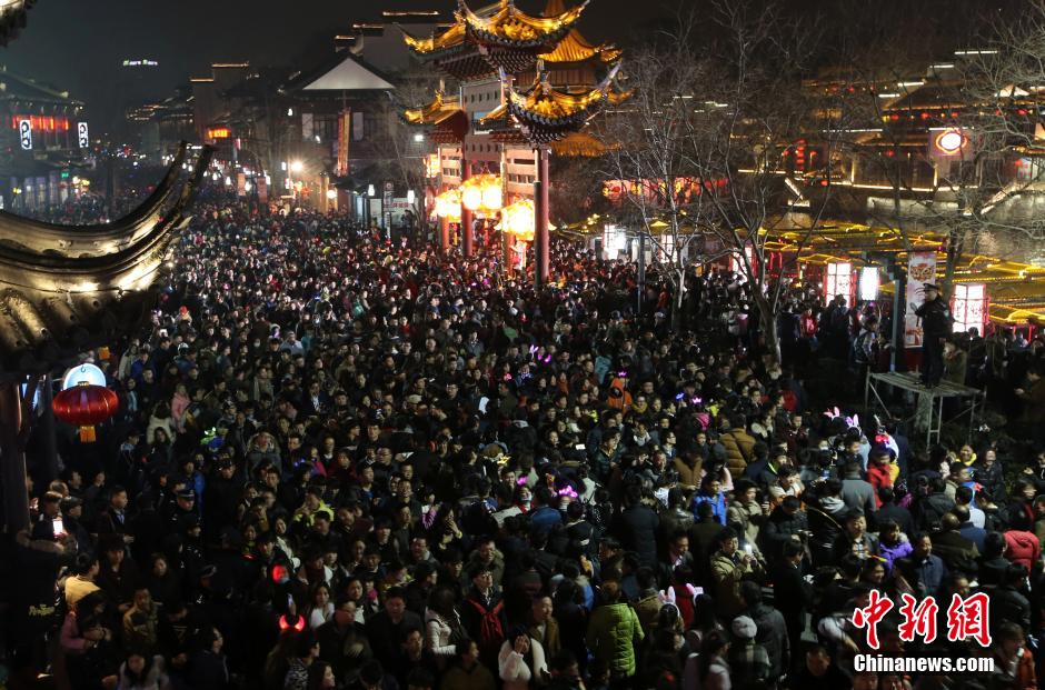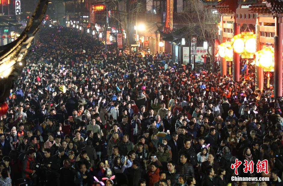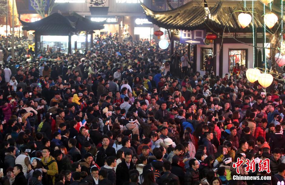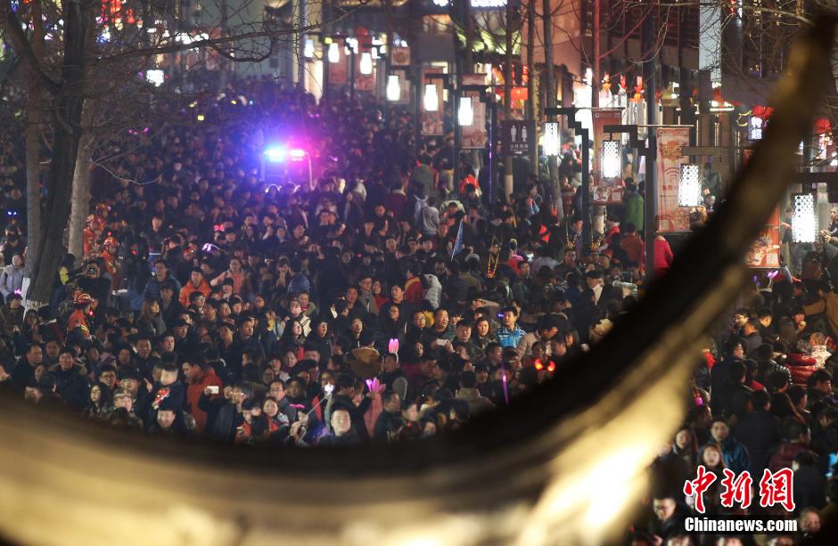 2月22日晚,南京夫子廟廣場上人山人海。當日是元宵節(jié),數十萬市民和游客涌進南京夫子廟景區(qū)內欣賞秦淮燈會,瞬間開啟“人從眾”模式。秦淮燈會又稱“金陵燈會”,是流傳于南京地區(qū)的特色民俗文化活動,主要在每年的春節(jié)至元宵節(jié)期間舉行。 中新社記者 泱波 攝