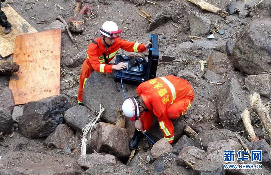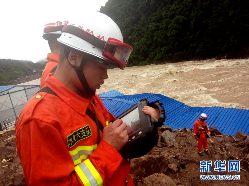 5月8日,在福建泰寧山體滑坡救援現(xiàn)場(chǎng),武警水電二總隊(duì)六支隊(duì)官兵利用“雷達(dá)生命探測(cè)儀”對(duì)任務(wù)區(qū)進(jìn)行搜救(手機(jī)拍攝)。