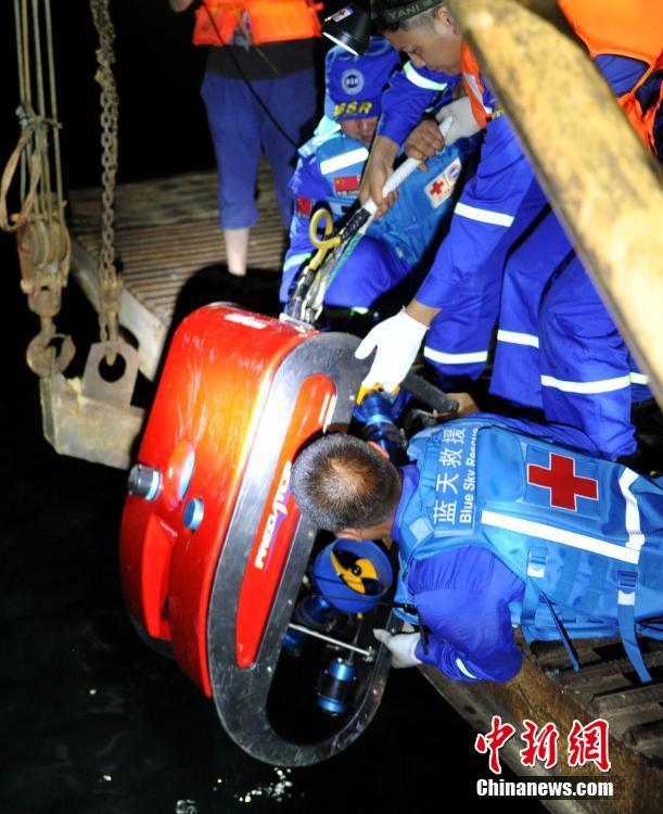 6月6日,四川廣元沉船事故救援現(xiàn)場,參與救援的水下機器人先后兩次下水,并通過攝像頭在翻沉的“雙龍”號船內(nèi)發(fā)現(xiàn)有遇難者以及一些漂浮物品。圖為救援人員將水下機器人抬放入水。中新社記者 劉忠俊 攝