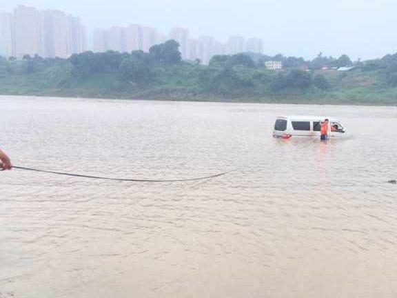 消防員趕到現(xiàn)場發(fā)現(xiàn)一輛金杯車位于江上,一名群眾正在竭盡全力往岸邊靠近??紤]到江水十分冰冷,被困人員在江水中浸泡已久,隨時可能引發(fā)抽筋,增加救援難度。消防員穿好救生衣和防護裝備之后,立即下水營救該名司機,天空下著大雨,為救援工作增加了難度。在經(jīng)歷了15分鐘左右的救援之后,成功將司機救上岸。但是車子依然浸泡在水里,車內(nèi)有大部分積水,坐墊也已然被淹沒,現(xiàn)場指揮員立即下達作戰(zhàn)命令,趕緊將車子拉到岸邊,在一眾熱心群眾和消防員的共同努力下,車子也成功抵達岸邊。