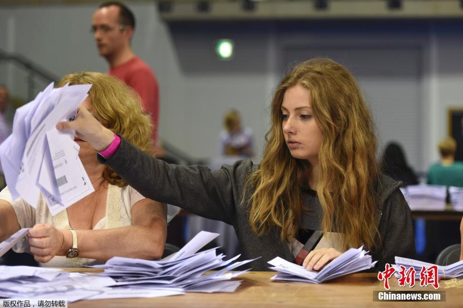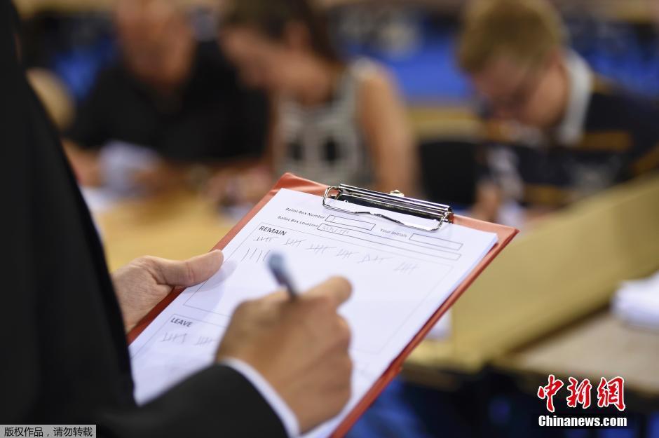 當?shù)貢r間2016年6月23日,英國脫歐公投拉開帷幕,各地計票工作進行中。