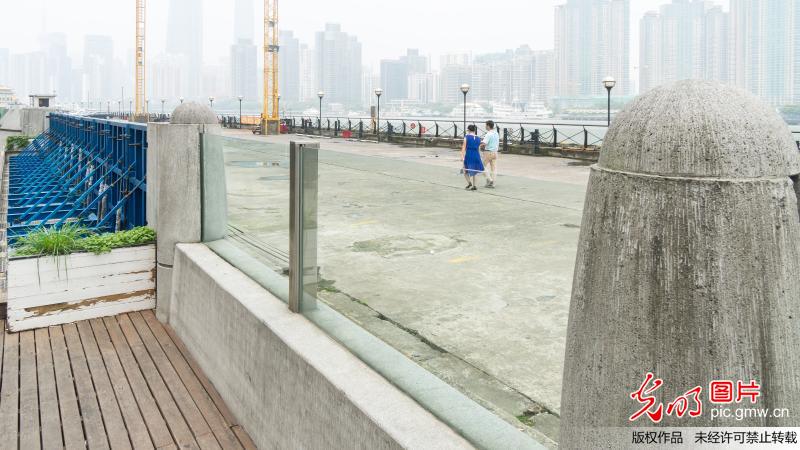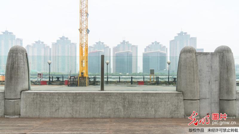 當日中午,走訪南外灘老碼頭,見到這一長達數(shù)十米,由鋼筋混凝土墻體和通透式玻璃組合而成的"抗洪神器",其中雙層玻璃防汛墻的厚度達到18毫米,既滿足防汛擋水需要,同時方便游客坐在岸堤邊欣賞老碼頭和江岸景色。(王岡攝/光明圖片)