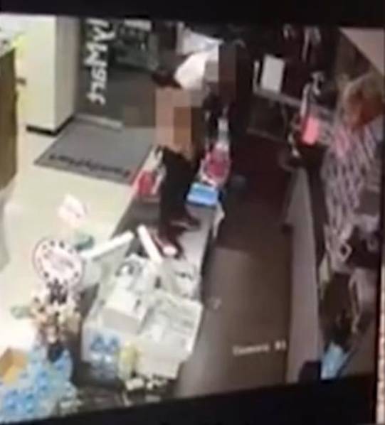 男店員企圖阻止女顧客但不果,之后拿起手機(jī)似乎在通報事件,然后男店員便躲到一旁。