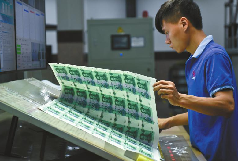 成鈔公司大門口,緊握槍支的武警駐守,在這里,有著嚴(yán)密的安檢措施。在經(jīng)過層層申報(bào)審批,暫存隨身攜帶的手包和手機(jī)后,記者獲批進(jìn)入生產(chǎn)車間。瞬間,靜謐被機(jī)器的轟鳴代替。在車間內(nèi),穿著藍(lán)色工裝的工人正有序忙碌著。在這里經(jīng)過多道印鈔工序及干燥、檢驗(yàn)等環(huán)節(jié)后,一張張雪白的印鈔紙“搖身一變”,成為紅紅綠綠的鈔票,整個(gè)過程前后需要耗時(shí)1個(gè)月左右。