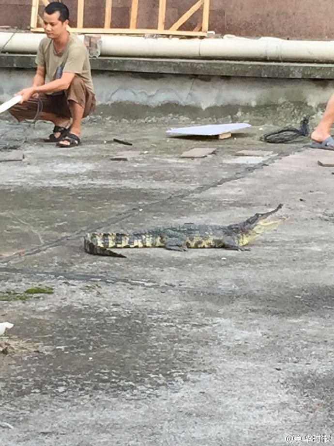 “鱷魚長約一米,身上有花斑,看著挺可怕的,還好沒有傷到人”。