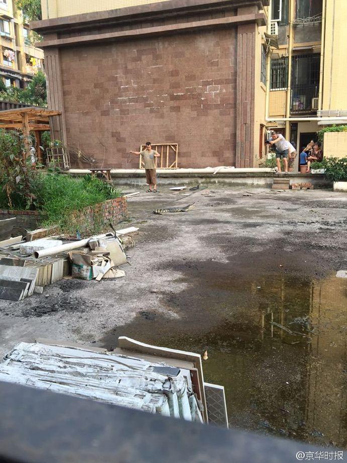 21日,四川省自貢市范女士告訴記者,昨晚樓上鄰居家的鱷魚“跳樓”了,掉進(jìn)她家一樓的小花園里。