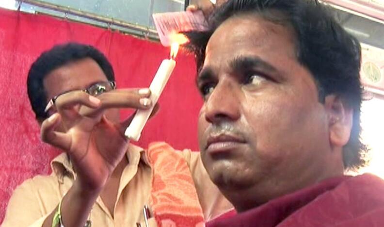 2016年11月1日?qǐng)?bào)道(具體拍攝時(shí)間不詳),印度卡納塔克邦古爾伯加,28歲的DasharathKumar展示自己的獨(dú)門(mén)絕技——用蠟燭理發(fā)。
