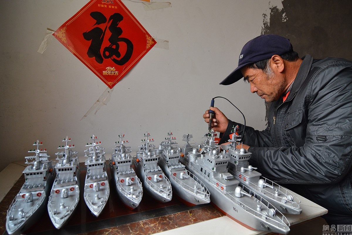 1月9日,今年59歲的郭長(zhǎng)海,是山東省日照市山海天旅游度假區(qū)肖家村一位普通的漁民。從2005年開始,他自己純手工制作“軍艦”模型,可以說是到了癡迷的程度。十幾年來,他先后花費(fèi)近6萬多元人民幣,造出了7艘可實(shí)現(xiàn)模擬槍炮發(fā)射的“軍艦”模型,十幾艘小軍艦?zāi)P?。幾年來,因?yàn)樗陌V迷,郭長(zhǎng)海也成為網(wǎng)絡(luò)、報(bào)紙、電視,以及自媒體等關(guān)注報(bào)道的對(duì)象,成為“網(wǎng)紅”。