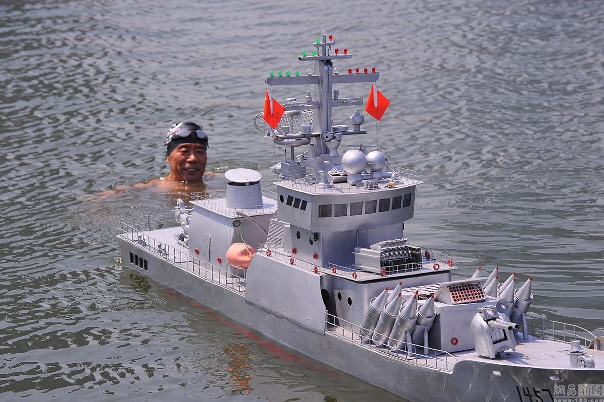 十幾年來,他先后成功的造出了“導(dǎo)彈驅(qū)逐艦”2艘,“巡洋艦”4艘,“導(dǎo)彈護(hù)衛(wèi)艦”1艘。2014年12月13日,郭長(zhǎng)海將半年時(shí)間打造的新作“導(dǎo)彈護(hù)衛(wèi)艦”拉到村里的大街上向村民展示,這艏長(zhǎng)3.07米,高1.2米,寬約0.8米的“導(dǎo)彈護(hù)衛(wèi)艦”在他的遙控指揮下,成功實(shí)現(xiàn)了陸地上的前進(jìn)、后退、左右拐彎,并可模擬槍炮發(fā)射火藥的效果。為了驗(yàn)證水上功夫,2015年8月13日,郭長(zhǎng)海在日照奧林匹克水上公園龍舟碼頭,為“導(dǎo)彈護(hù)衛(wèi)艦”進(jìn)行試航,經(jīng)過半個(gè)多小時(shí)的調(diào)試,最終試航成功。連續(xù)兩年在眾人面前的試驗(yàn),均獲得成功,這大大增強(qiáng)了他的信心。