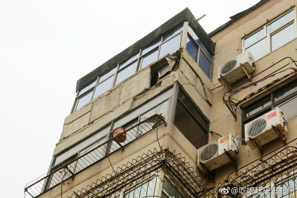 2017年3月12日,鄭州遭遇5級以上大風(fēng)襲擊,只聽“咚”“咚”幾聲,紅專路附近一棟居民樓的陽臺(tái)因年久失修,發(fā)生大面積的倒塌。
