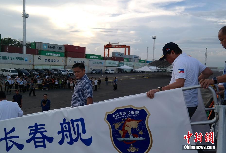 這支艦艇編隊4月23日從上海黃浦江畔啟航,將赴亞洲、歐洲、非洲和大洋洲20余個國家進行友好訪問,菲律賓是首站。圖為長春艦緩緩靠岸。 中新社記者 張明 攝