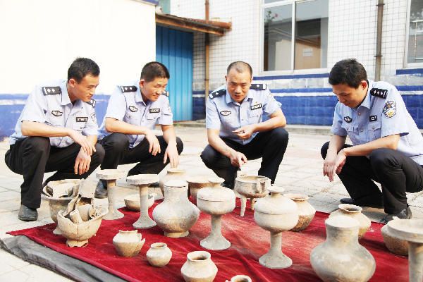 經(jīng)縝密偵查,城郊派出所會同刑警二中隊將馬某抓獲,并從馬某家中搜出大量文物。隨后,民警對查獲的文物進(jìn)行了清點,竟然達(dá)25件,而且全是國寶級文物!