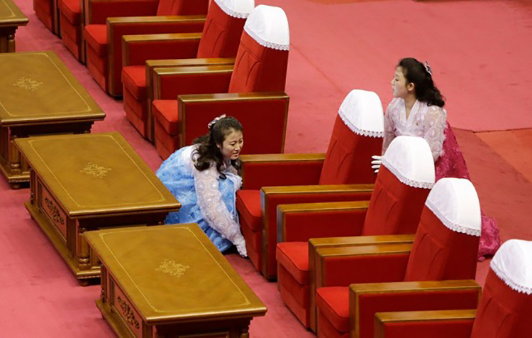 看完了朝鮮空姐,你想知道朝鮮其他職業(yè)女性是什么樣子的嗎?也許是因?yàn)橛跋褓Y料較少,也許是因?yàn)閭餮蕴婊?。朝鮮,在很多人眼里擁有一絲神秘的色彩。路透社這一系列肖像作品以拍攝朝鮮職業(yè)女性為切入點(diǎn)。攝影師克服重重阻難,盡力為我們記錄朝鮮女性真實(shí)的工作狀態(tài)。兩位女士在調(diào)整朝鮮最高領(lǐng)導(dǎo)人和客人的座椅。