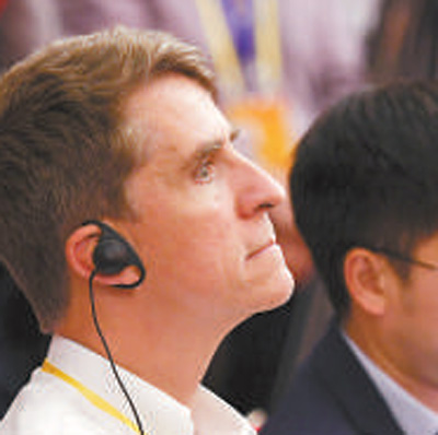 外國記者在梅地亞中心認(rèn)真聽會。本報記者 雷 聲攝 |