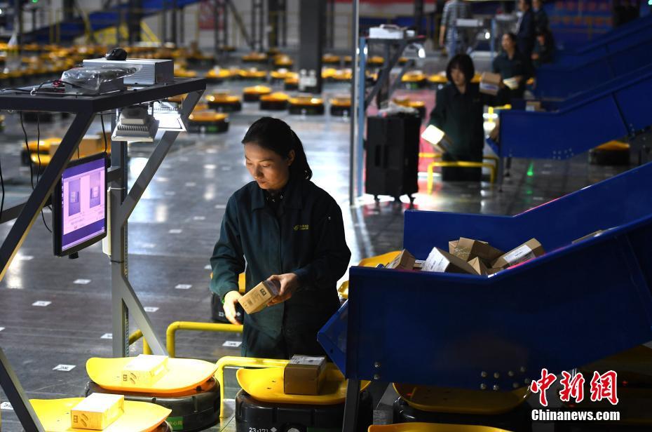 智能機(jī)器分揀機(jī)器人“小黃人”將包裹投遞到各個地區(qū)。文/韓蘇原 夏瑩 圖/韓蘇原