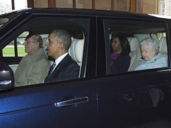 美國總統(tǒng)奧巴馬與妻子米歇爾22日到訪英國溫莎城堡,英國女王伊麗莎白二世與丈夫菲利普親王乘車迎接。只是,這次的司機(jī)是94歲的菲利普親王。奧巴馬坐上路虎汽車的副駕駛座,伊麗莎白二世和米歇爾坐在后排座位。奧巴馬晚些時候告訴記者:“我還從來沒有坐過親王開的車。我得說,車開得很平穩(wěn)。”