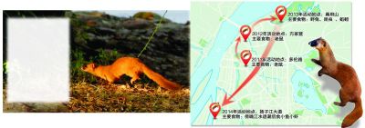 居住在鼓樓區(qū)煤炭港附近的知情居民武先生也是一名動(dòng)物攝影愛好者,據(jù)他多年的攝影經(jīng)驗(yàn)和追蹤觀察,總結(jié)勾畫出黃鼠狼在南京城北的一張“覓食行蹤圖”,2011年黃鼠狼出沒在下關(guān)多倫路一帶的居民區(qū),那里居住密集,也“養(yǎng)肥”了不少老鼠,它們成了黃鼠狼的美餐,據(jù)他觀察,每只黃鼠狼一夜間可捕食6只老鼠。2012年,多倫路一帶開始動(dòng)遷,黃鼠狼們轉(zhuǎn)戰(zhàn)方家營(yíng),仍以老鼠為主食。之后黃鼠狼又來到幕府山一帶,主要以野兔、昆蟲和蚯蚓為食。今年黃鼠狼把目光瞄準(zhǔn)到揚(yáng)子江大道濱江外灘,那里臨江多水,在傍晚退潮時(shí),小魚小蝦都“跳到了黃鼠狼的口里來”。多年的黃鼠狼拍攝追蹤經(jīng)歷也使得武先生因此混出個(gè)“武大狼”的綽號(hào)。
