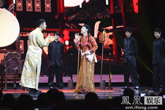 日前,《歡樂喜劇人》第二季發(fā)布預(yù)告片,網(wǎng)友驚喜發(fā)現(xiàn)其中居然有“教主”黃曉明的身影。據(jù)悉,黃曉明將作為助演嘉賓與遼寧民間藝術(shù)團上演古裝喜劇《喜從天降》。其中,小沈陽梳著兩個大麻花辮,紅唇艷抹,“笑”果十足。而黃曉明則是一身金黃色長袍,帥氣有型。兩人在舞臺上配合默契,尤其是黃曉明卸下“偶像包袱”搞笑揮手,積極與觀眾互動,甚至還和小沈陽深情對視,將現(xiàn)場推向高潮。小沈陽則十分入戲,對著黃曉明嬌聲嬌氣說道“我就是你的Baby”,惹得臺下尖叫連連。這也讓不少網(wǎng)友十分好奇,紛紛評論道“到底發(fā)生了什么,黃曉明居然也來演喜劇了”、“黃曉明都來了,這是要逆天的節(jié)奏?。 ?、“曉明哥我就不說你了,求angelababy的心里陰影面積”、“陽仔,我們可就等著周末看你怎么撲倒黃曉明”。