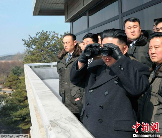 資料圖:由朝中社3月4日公布的照片顯示,朝鮮人民軍最高司令官、朝鮮黨和人民的最高領(lǐng)導者金正恩視察板門店。