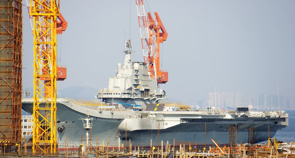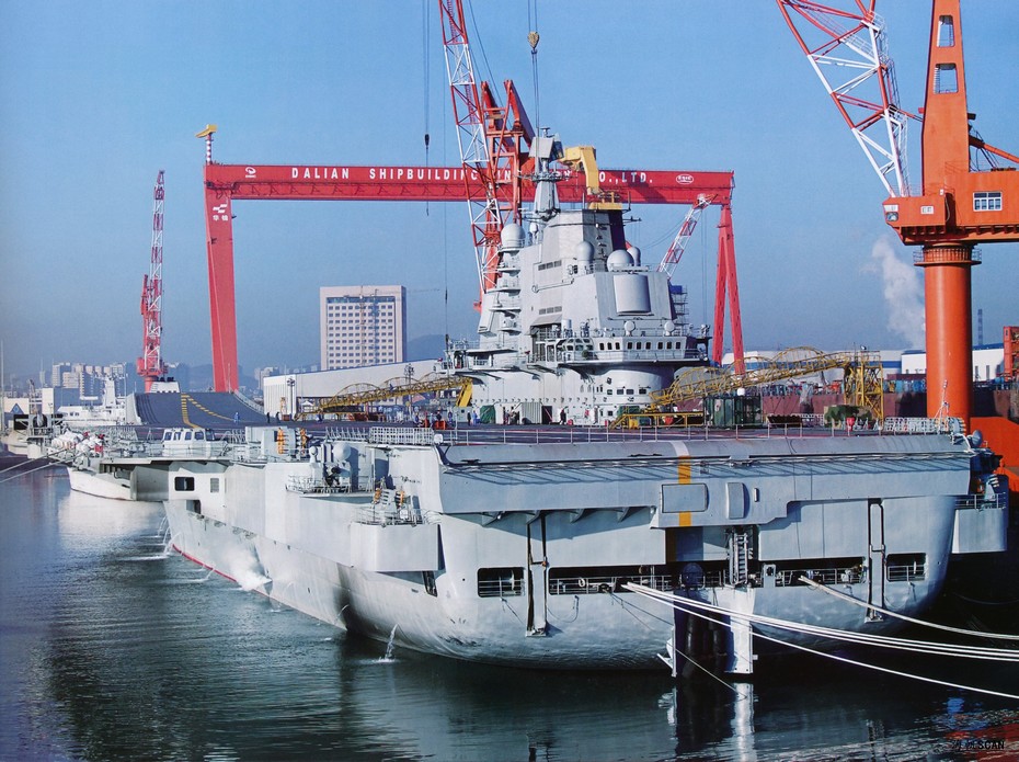 中國航母瓦良格號目前正在大連準(zhǔn)備第5次和第6次試航,圖為試航回航時的現(xiàn)場。
