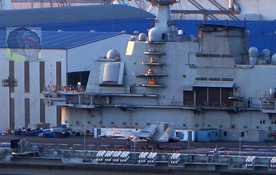 據(jù)網(wǎng)友拍攝的照片顯示,正在大連進(jìn)行改裝的瓦良格號航母的改裝工作有了最新進(jìn)展,甲板上出現(xiàn)了兩架類似艦載機的模型。(超大軍事從小就黑供圖)