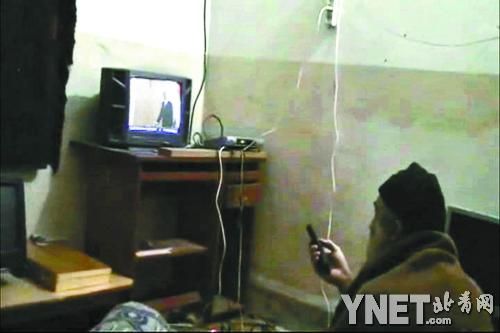 美國(guó)國(guó)防部提供的視頻截圖照片顯示本-拉登坐在一間房屋內(nèi)看著電視