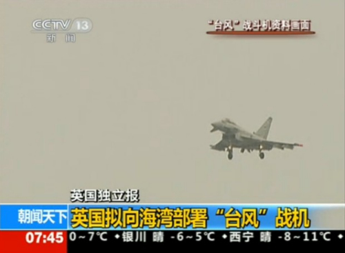 報道指出,英國考慮部署戰(zhàn)機的時機是,以色列威脅要對伊朗發(fā)動軍事打擊,中東大部分地區(qū)處于“阿拉伯之春”以及敘沖突余波所帶來的動蕩中。在這一動蕩時期是否向海灣部署戰(zhàn)機,這將由英國首相卡梅倫在同迪拜和阿聯(lián)酋深入交談后做出決定。預計在不久的將來將宣布相關(guān)決定。