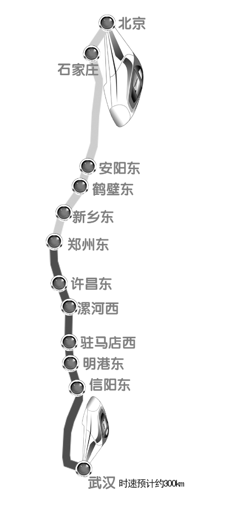 他說(shuō),石武高鐵設(shè)計(jì)時(shí)速350公里,但出于安全考慮,可能實(shí)際時(shí)速會(huì)在300公里左右。