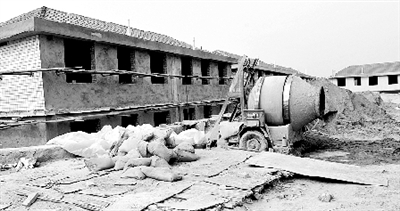 在泰山村村西邊看到大面積在建別墅已經(jīng)停工,一個(gè)農(nóng)民工說(shuō),這兒是“龍騰盛世”四期。關(guān)于停工,該農(nóng)民工說(shuō):“停幾天還會(huì)再開工的,村支書能量大著呢。”