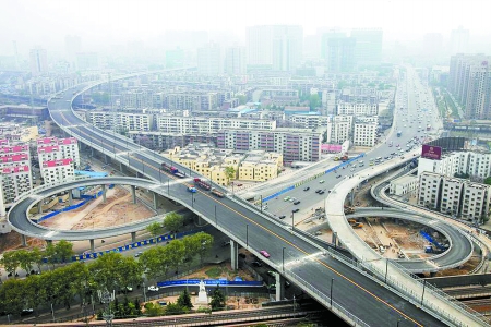 昨天上午,京沙快速通道工程工程監(jiān)理王柳洋,帶記者體驗了該路高架橋路段。由京沙快速通道與中原路交叉口北上,路中央已畫有兩條黃線。行至解放路高架橋頂端,可見從該路分出的匝道,形成兩條線路一南一北并入京沙快速通道。向北駛入金水路、北三環(huán),向南駛入中原路、南三環(huán),“兩條高架橋的連接,能最大限度地緩解二七廣場區(qū)域及未來火車站西出站口的交通壓力?!蓖趿蠓Q,在京沙快速通道一期工程中,跨解放路高架橋、隴海鐵路、金水路系最為復雜的工程。