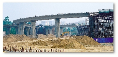 花園路連霍高速互通立交橋遠(yuǎn)遠(yuǎn)望去已經(jīng)成型