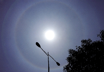 “昨天10點(diǎn)多,鄭州發(fā)生日暈奇觀,看到的同學(xué)舉手!”這條微博一發(fā),引來不少網(wǎng)友圍觀。從昨天10點(diǎn)30分開始,鄭州的上空,太陽周圍突然出現(xiàn)一個(gè)漂亮的彩環(huán),足足持續(xù)了3個(gè)小時(shí)。